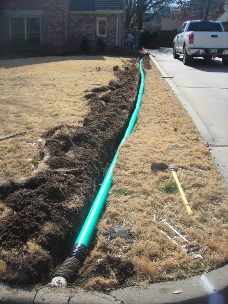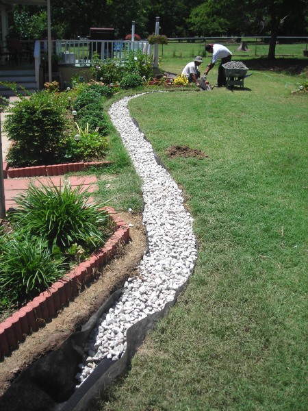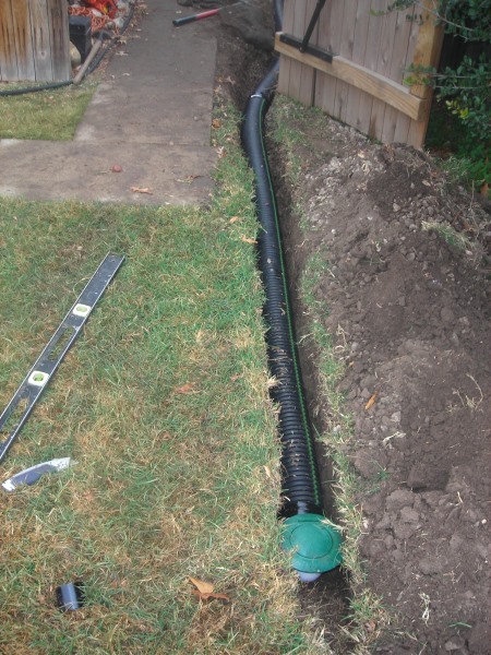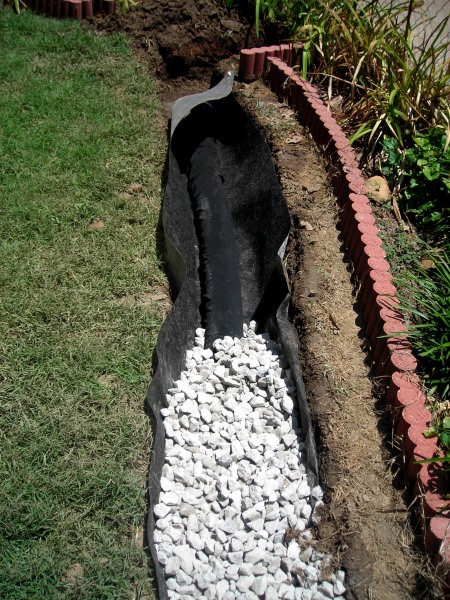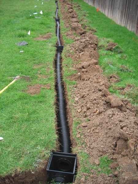 collecting in the middle of a yard, we install water catch basins with drain pipes to carry away water. French